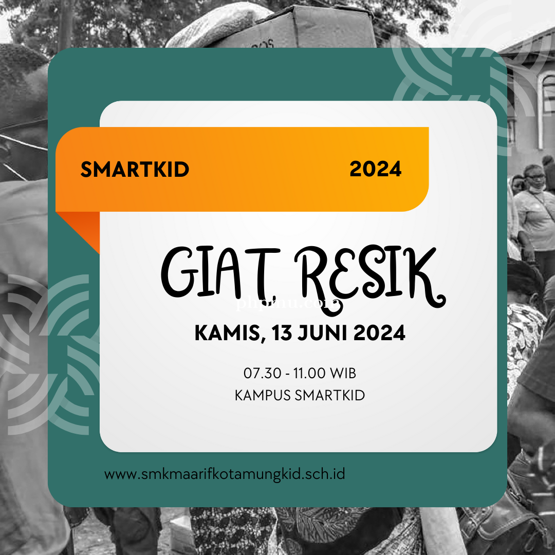 Kegiatan Giat Resik yang dilaksanakan di SMARTKID pada hari Kamis, 13 Juni 2024 diikuti oleh seluruh warga sekolah SMK MAARIF KOTA MUNGKID Dokumentasi Kegiatan : . . . 0