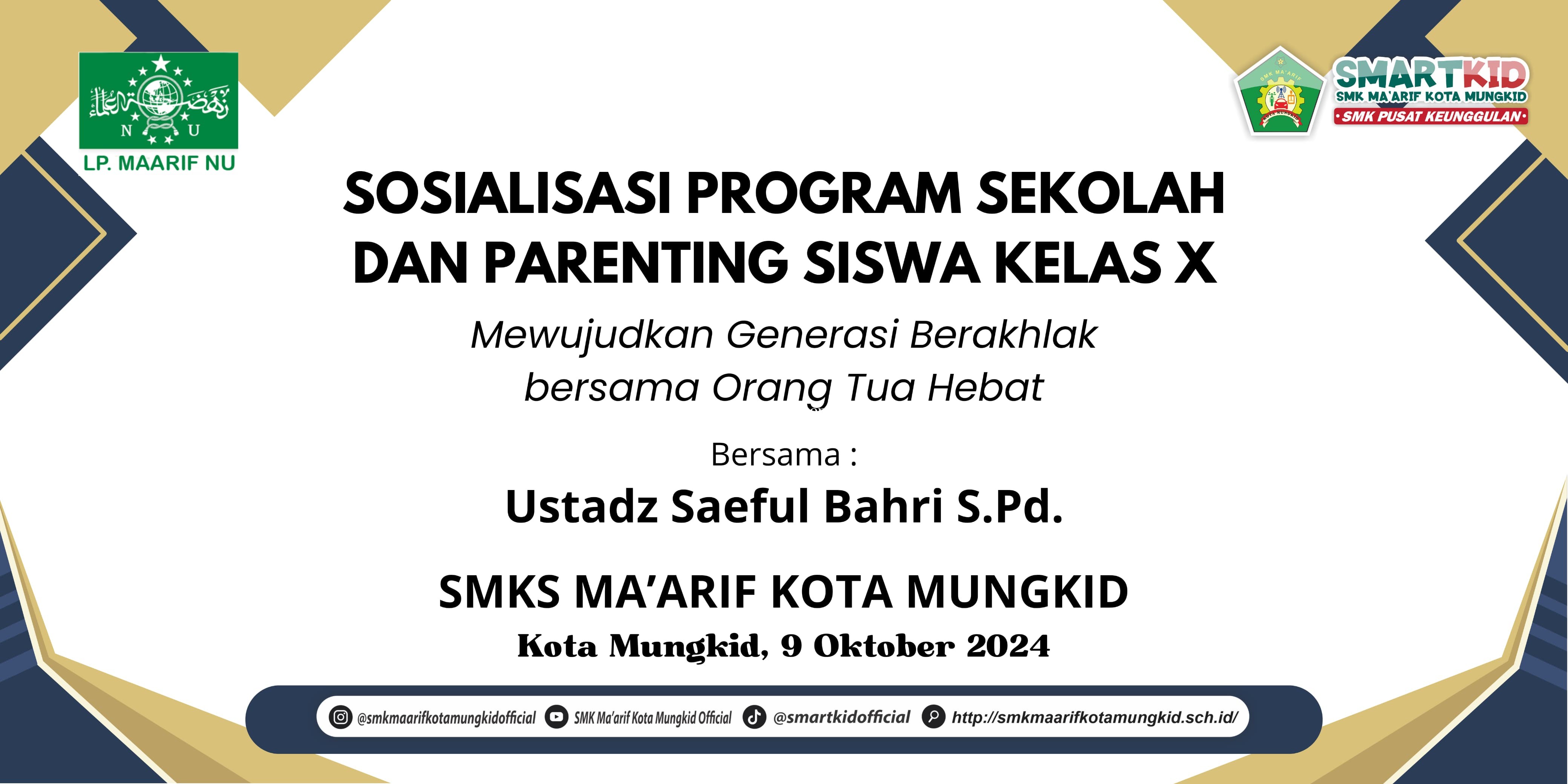 Sosialisasai Pogram Sekolah dan Parenting Siswa Kelas X Kegiatan Parenting kelas X terlaksana dengan khidmat dan menarik. Ustadz Saeful Bakhri, S. Pd. membuka pikiran para orang tua agar lebih serius dalam . . . 0